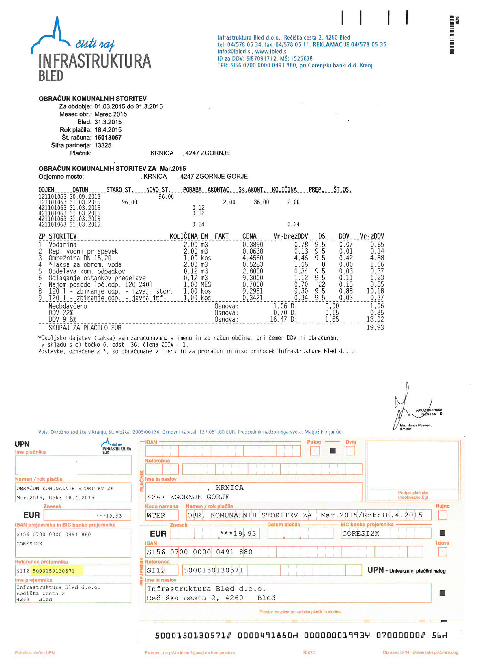 Instead of the classic receipt of invoices for sewerage and waste disposal services rendered by the company Infrastruktura Bled d.o.o. you can replace them with e-invoices; you should only subscribe to e-invoicing at your web-bank.